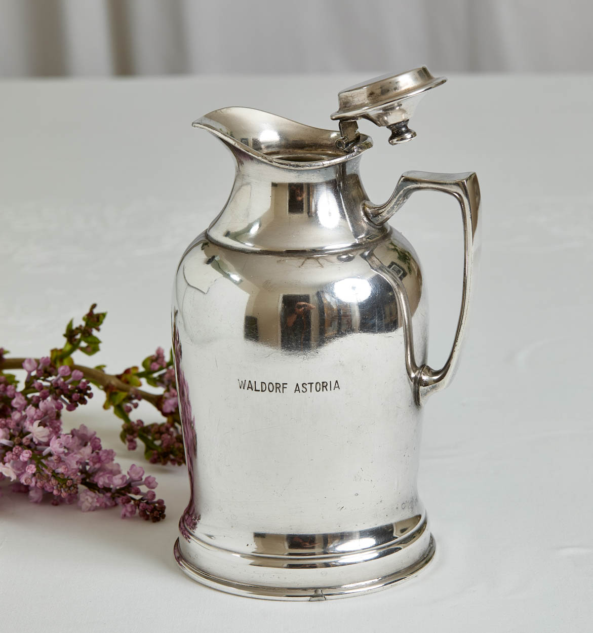 Acquired from a lavish collector's estate, a vintage silver plate insulated coffee pot from the famed Waldorf Astoria in New York City.